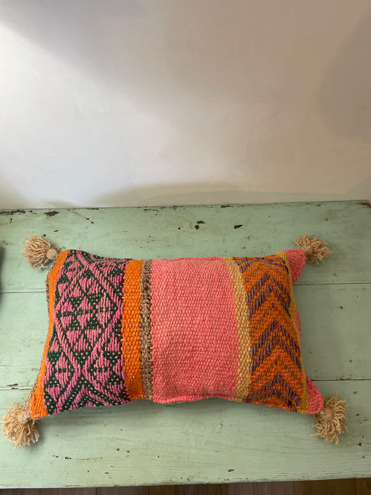 Cuscino di lana con pom-pon