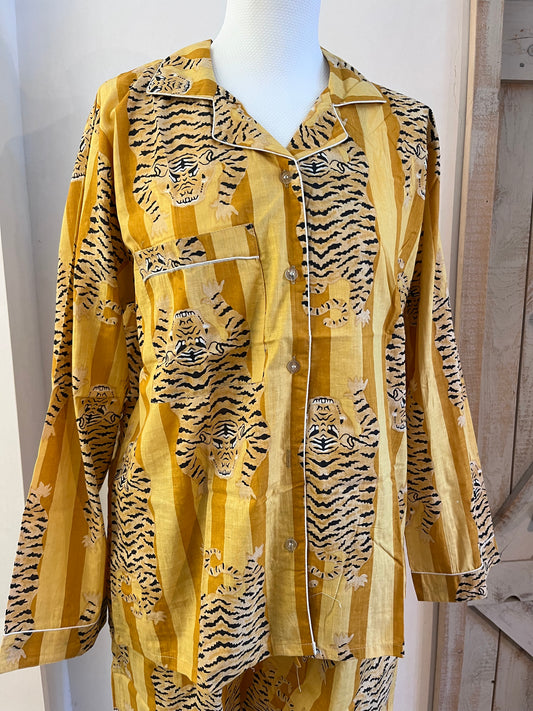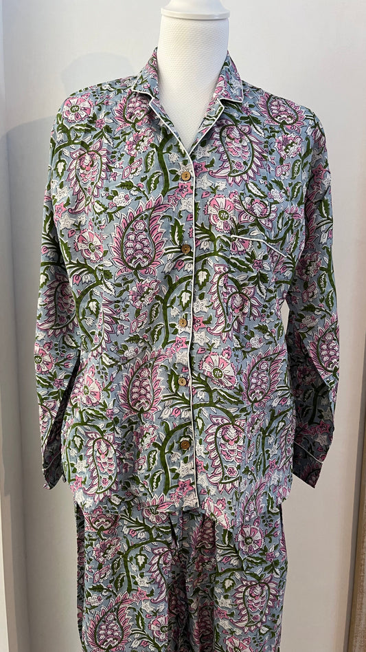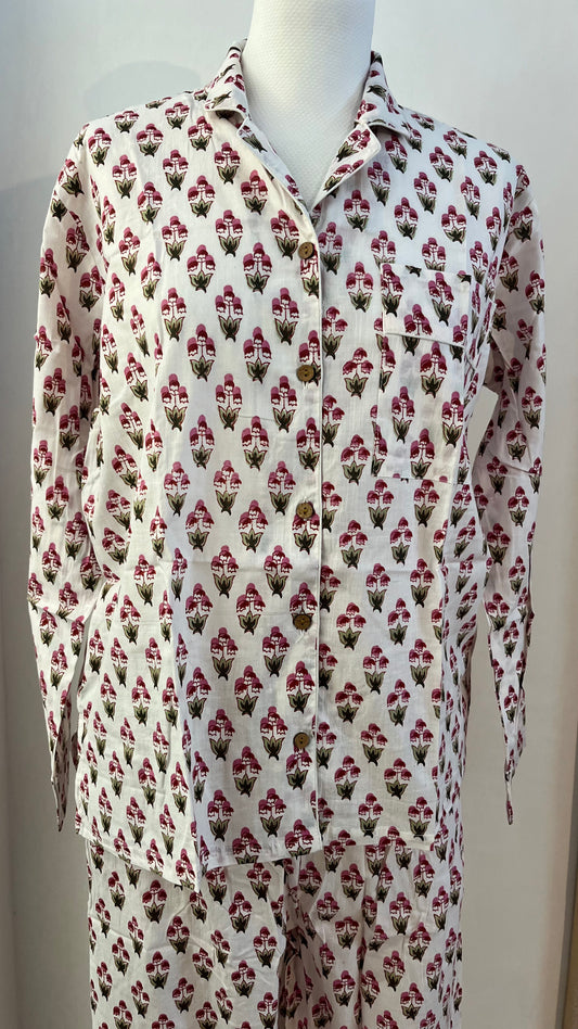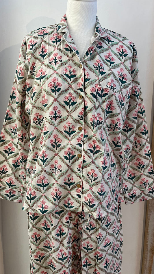 Pigiama di cotone stampato a mano