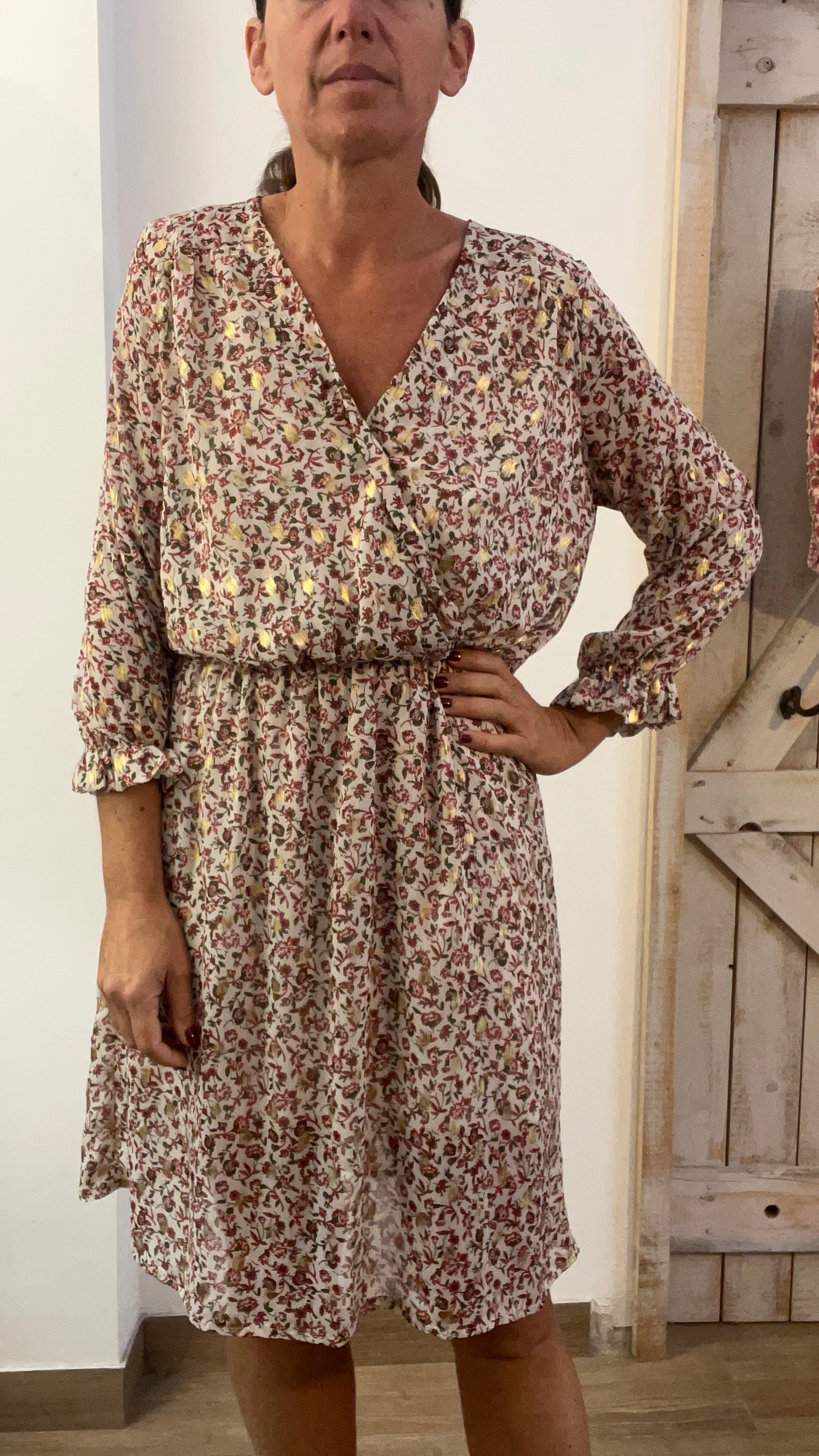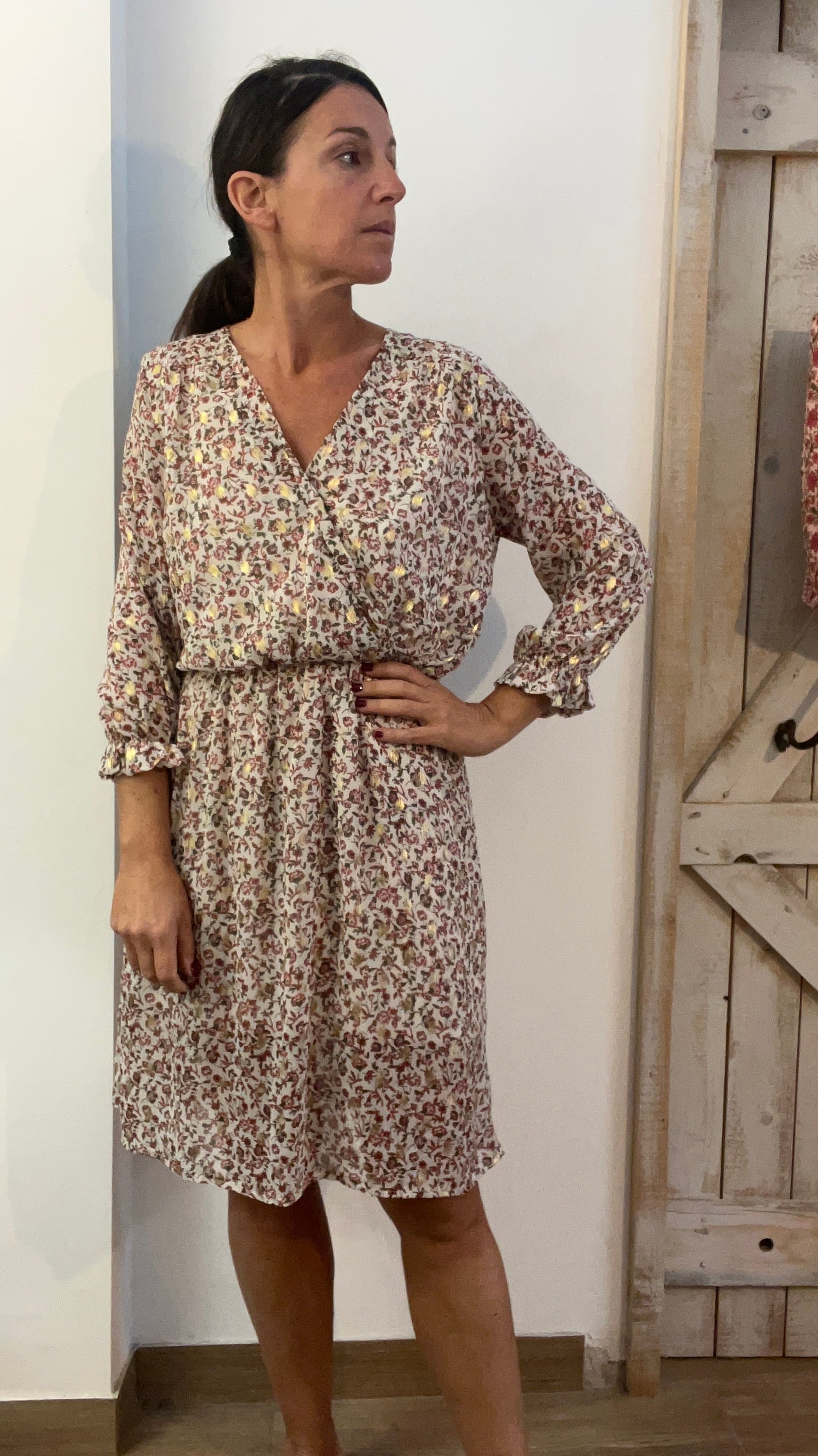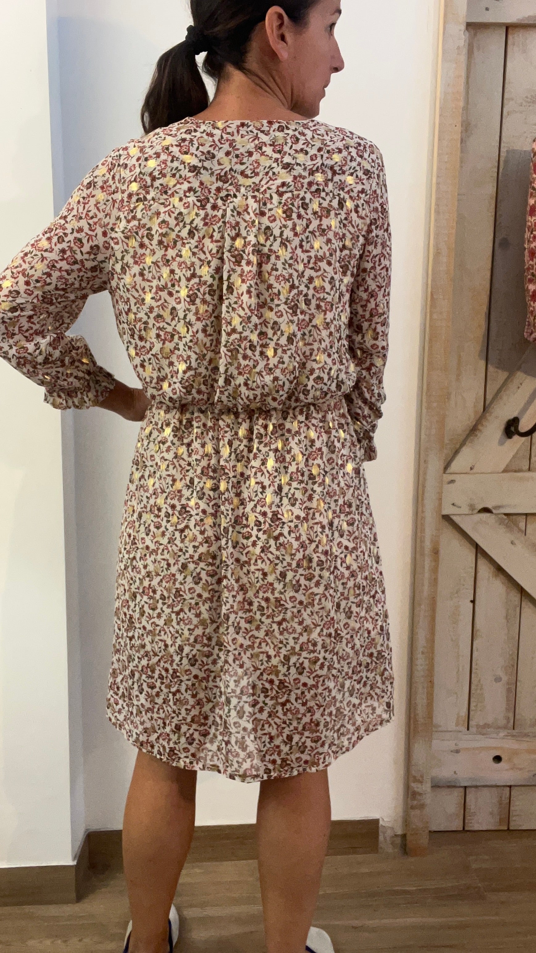 Abito corto stampato con filo di lurex oro