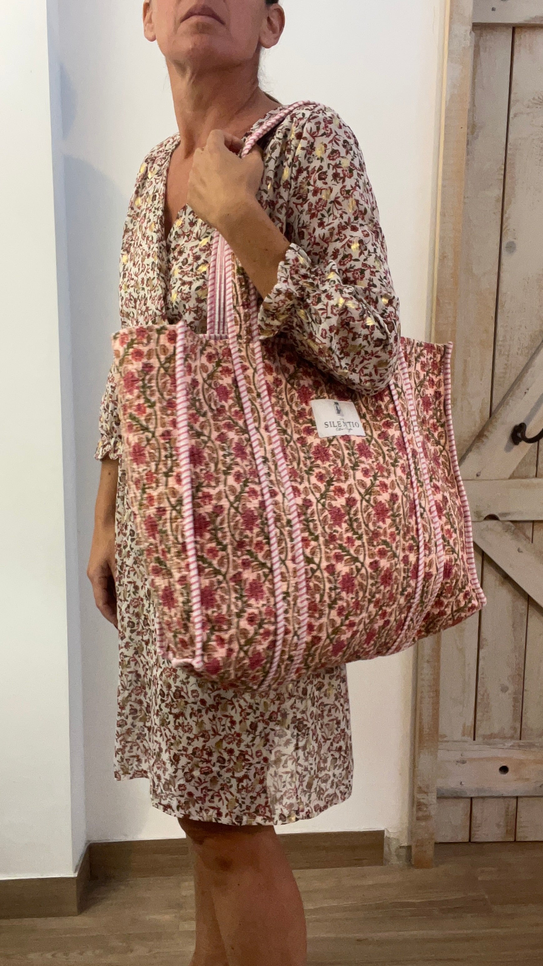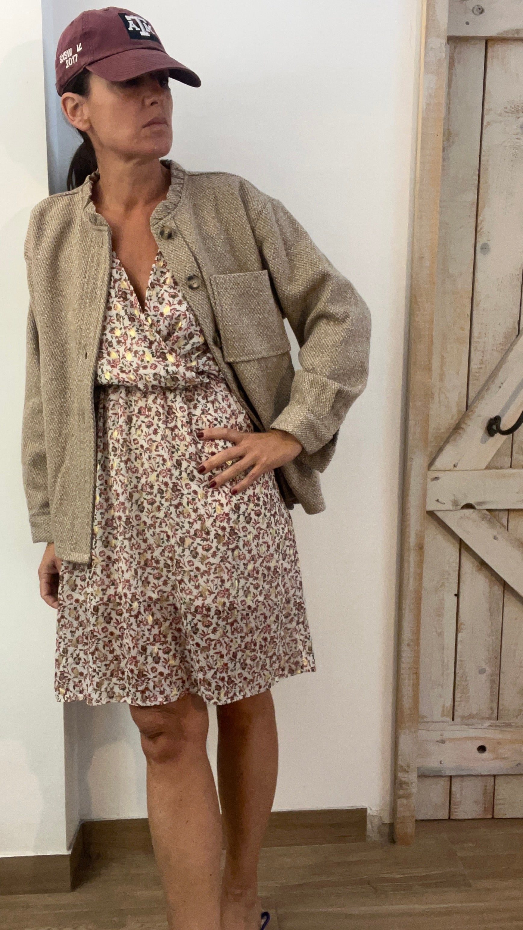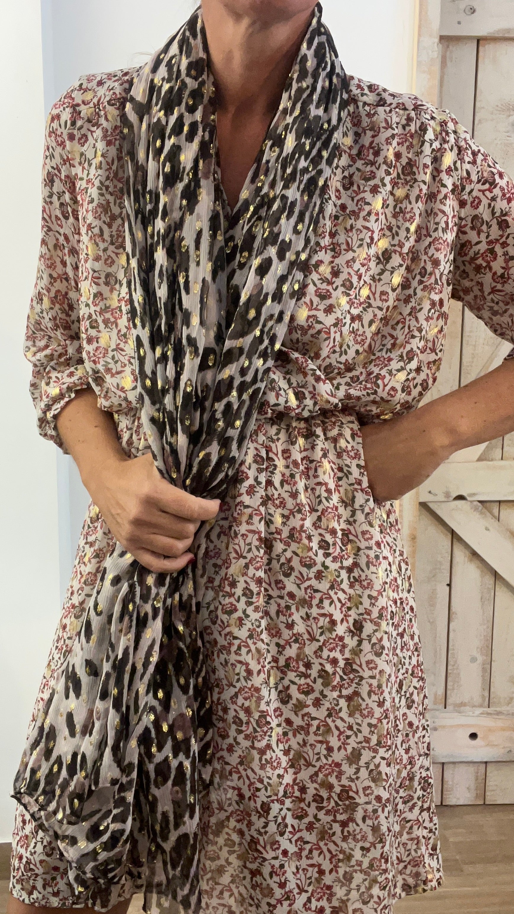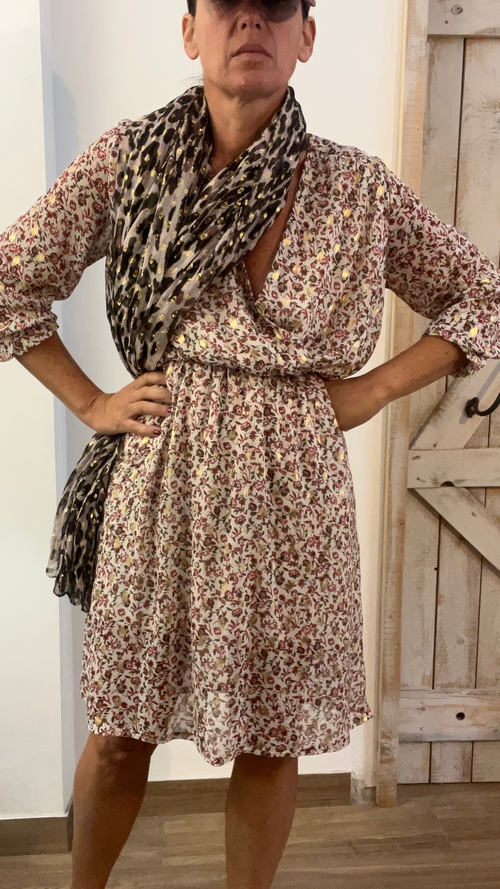Abito corto stampato con filo di lurex oro