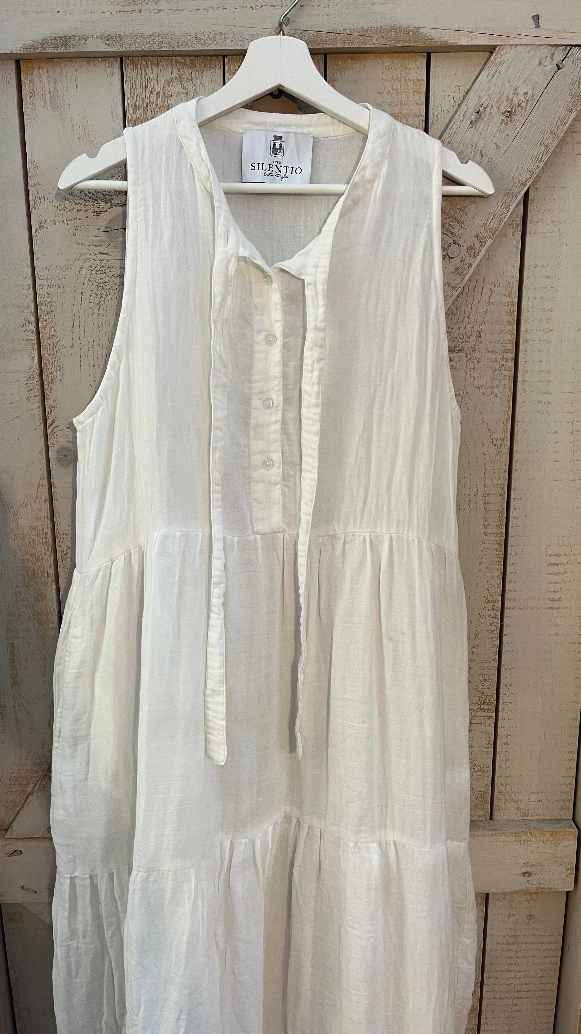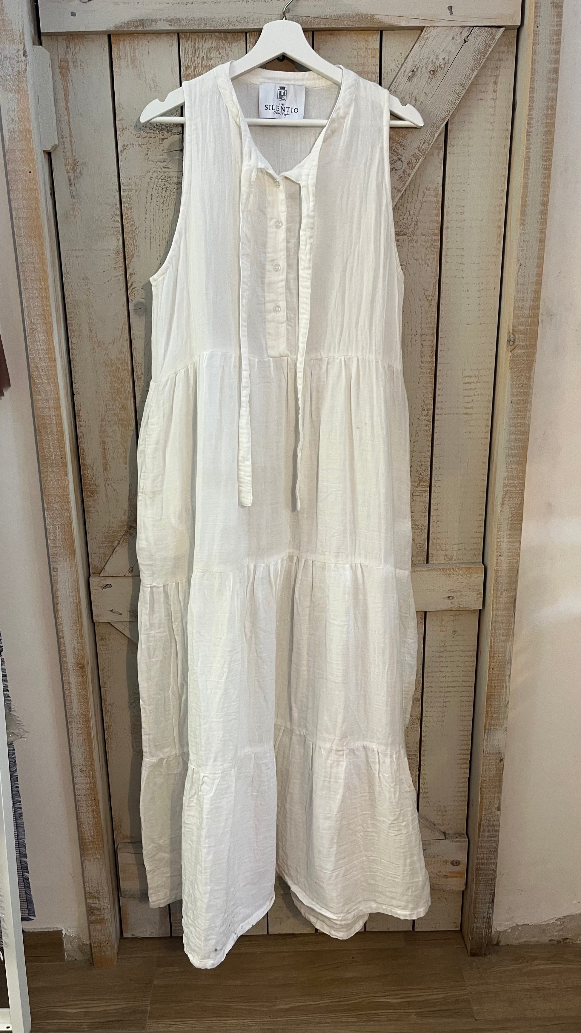 Abito di cotone a balze con bottoncini e piccolo fiocco