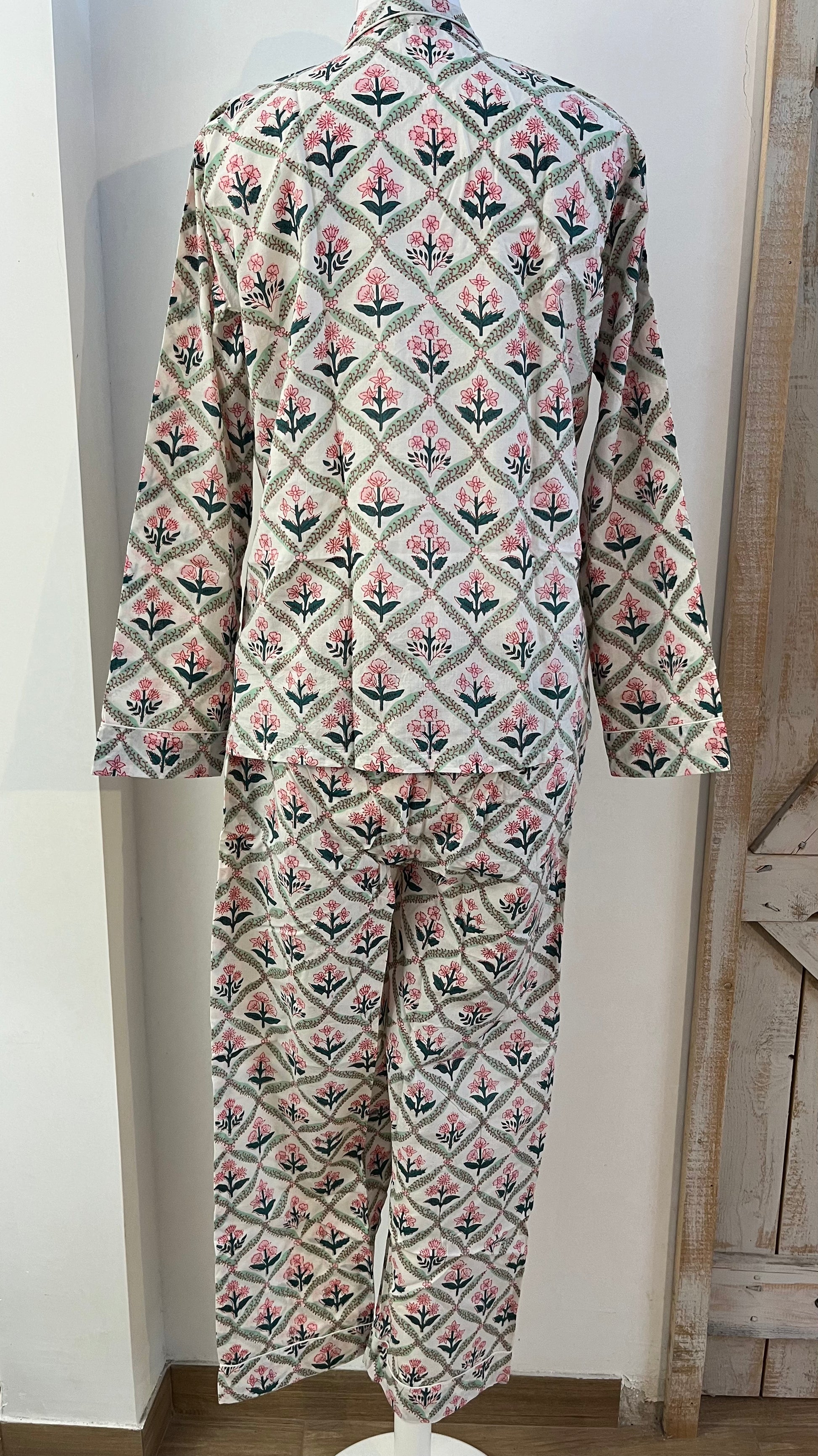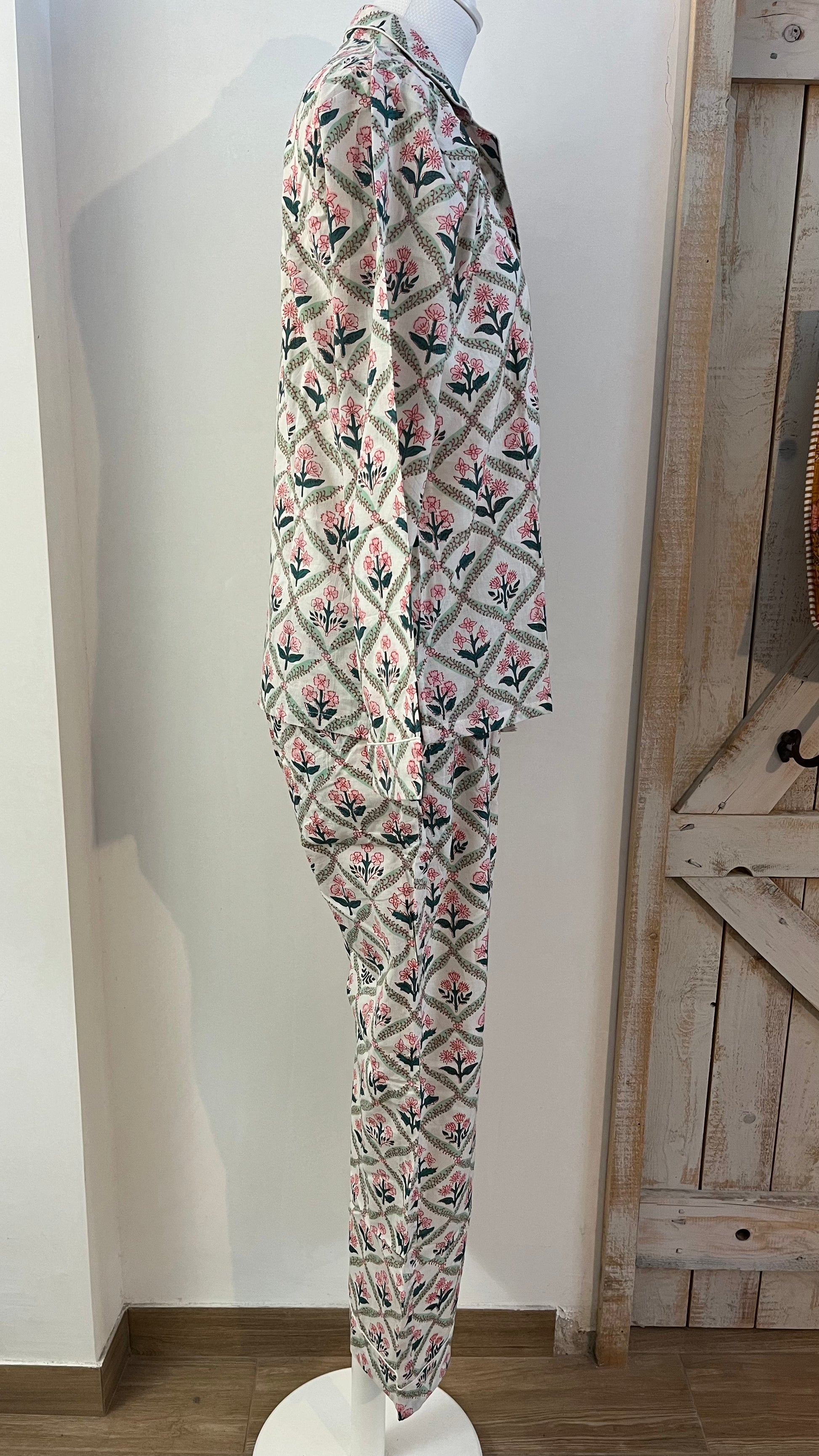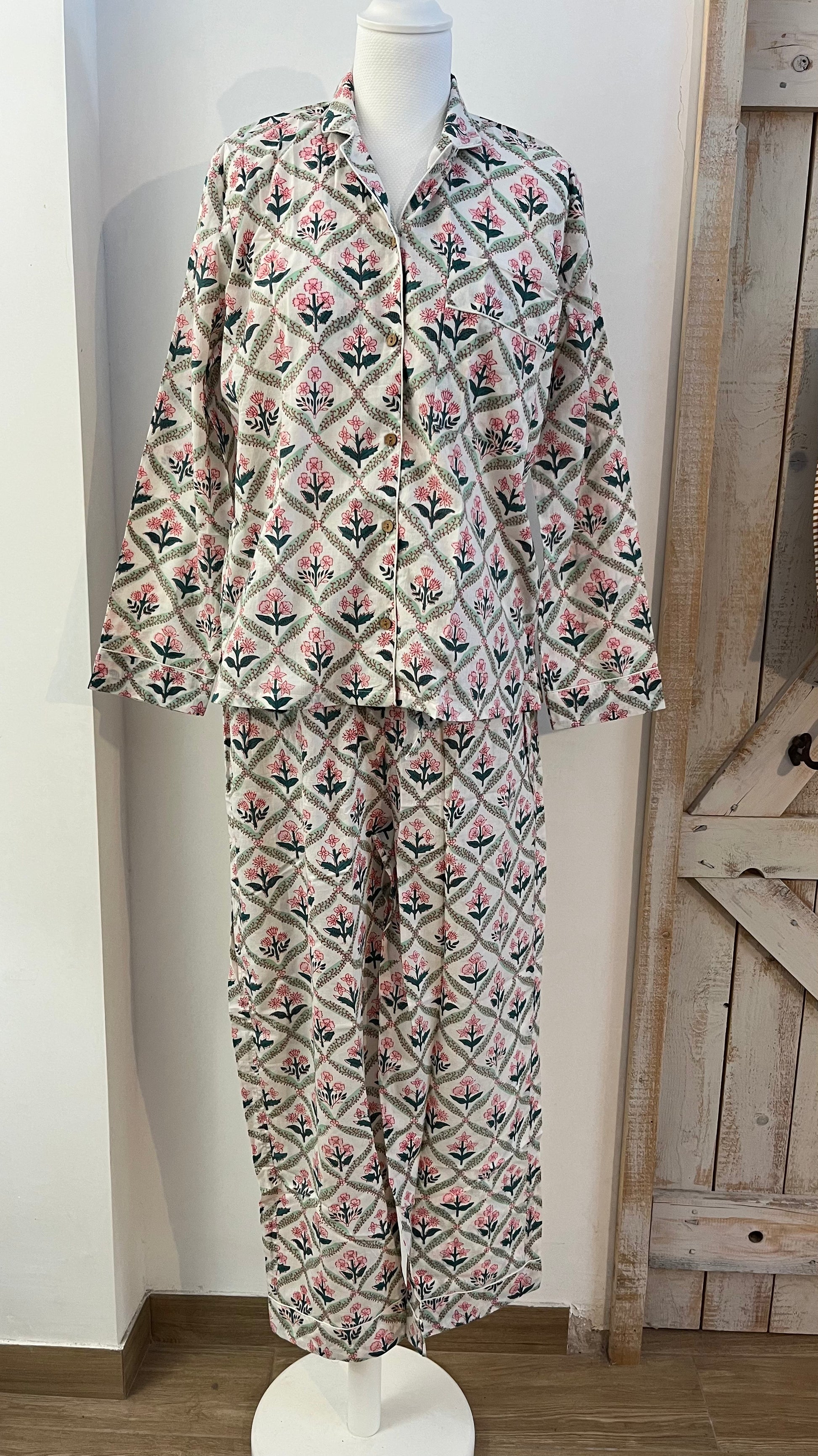 Pigiama di cotone stampato a mano