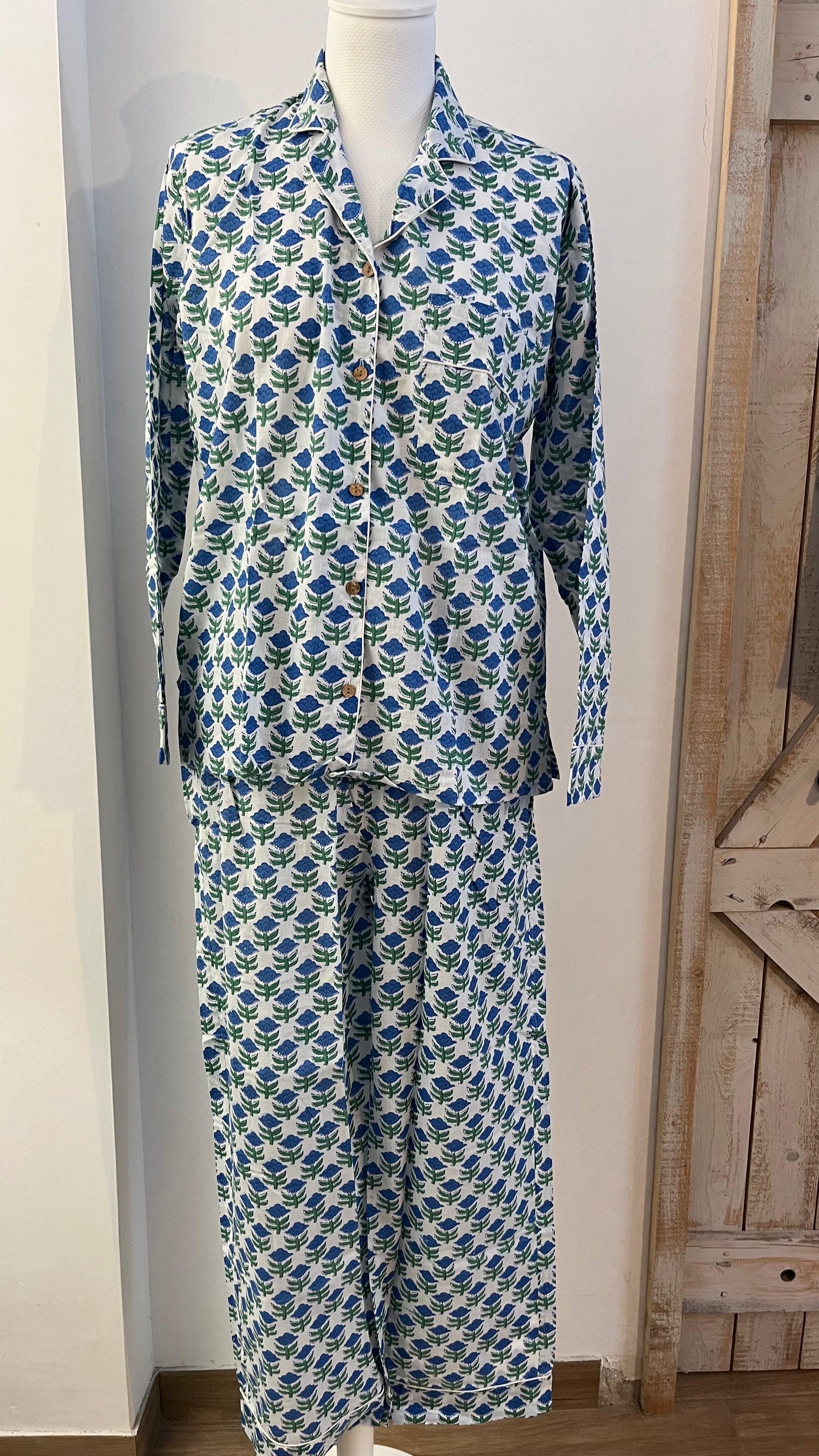 Pigiama di cotone stampato a mano