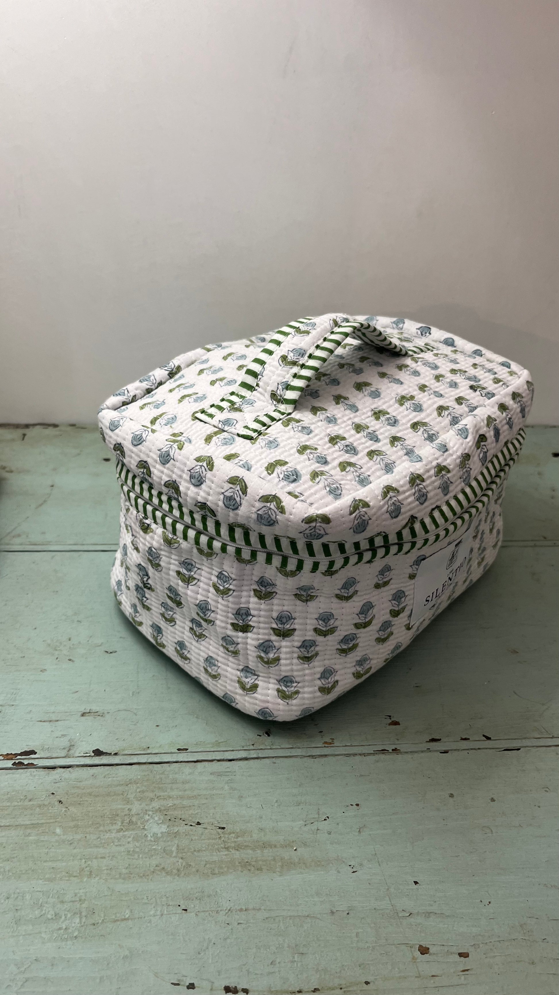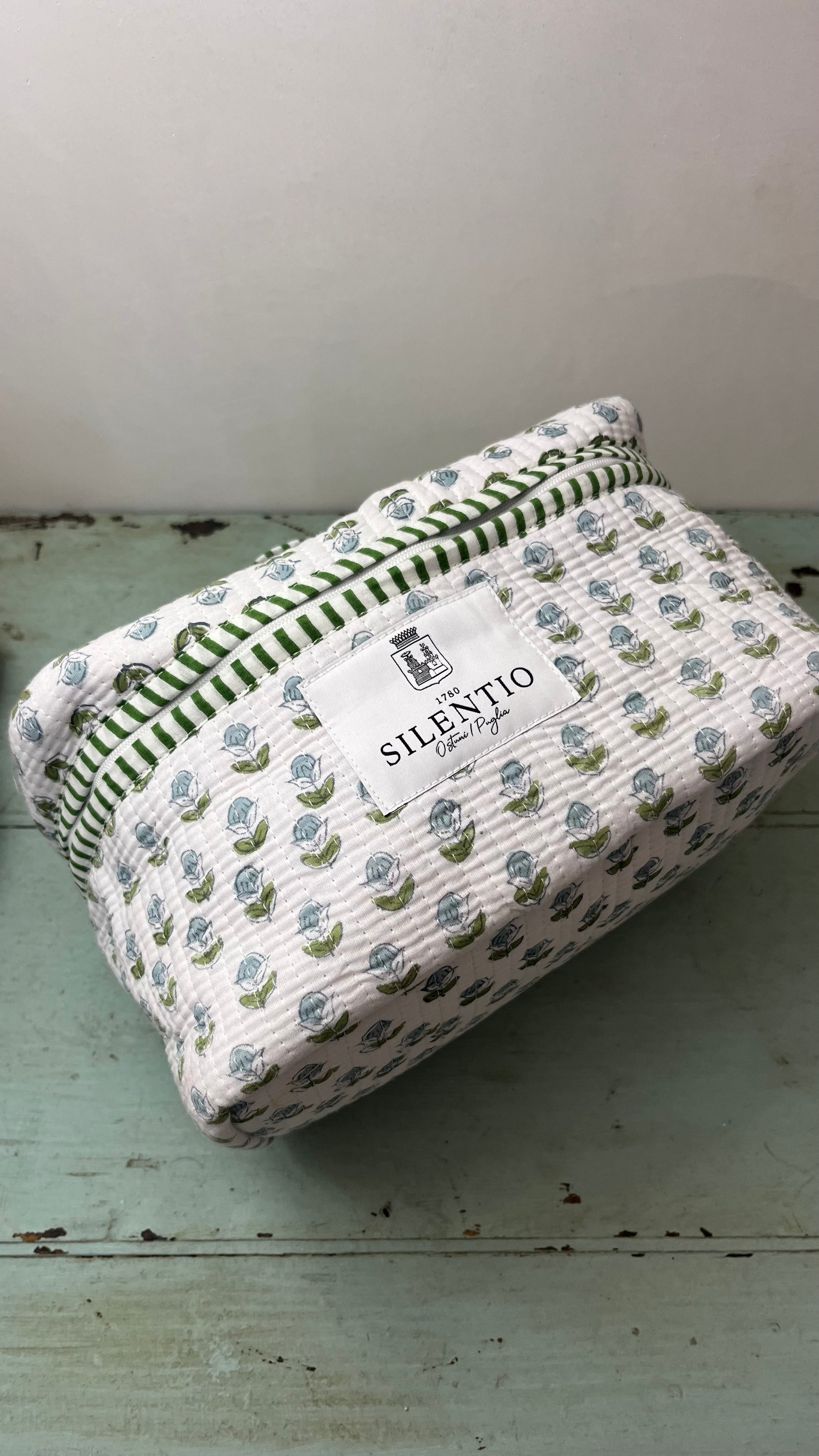 Beauty case di cotone stampato a mano