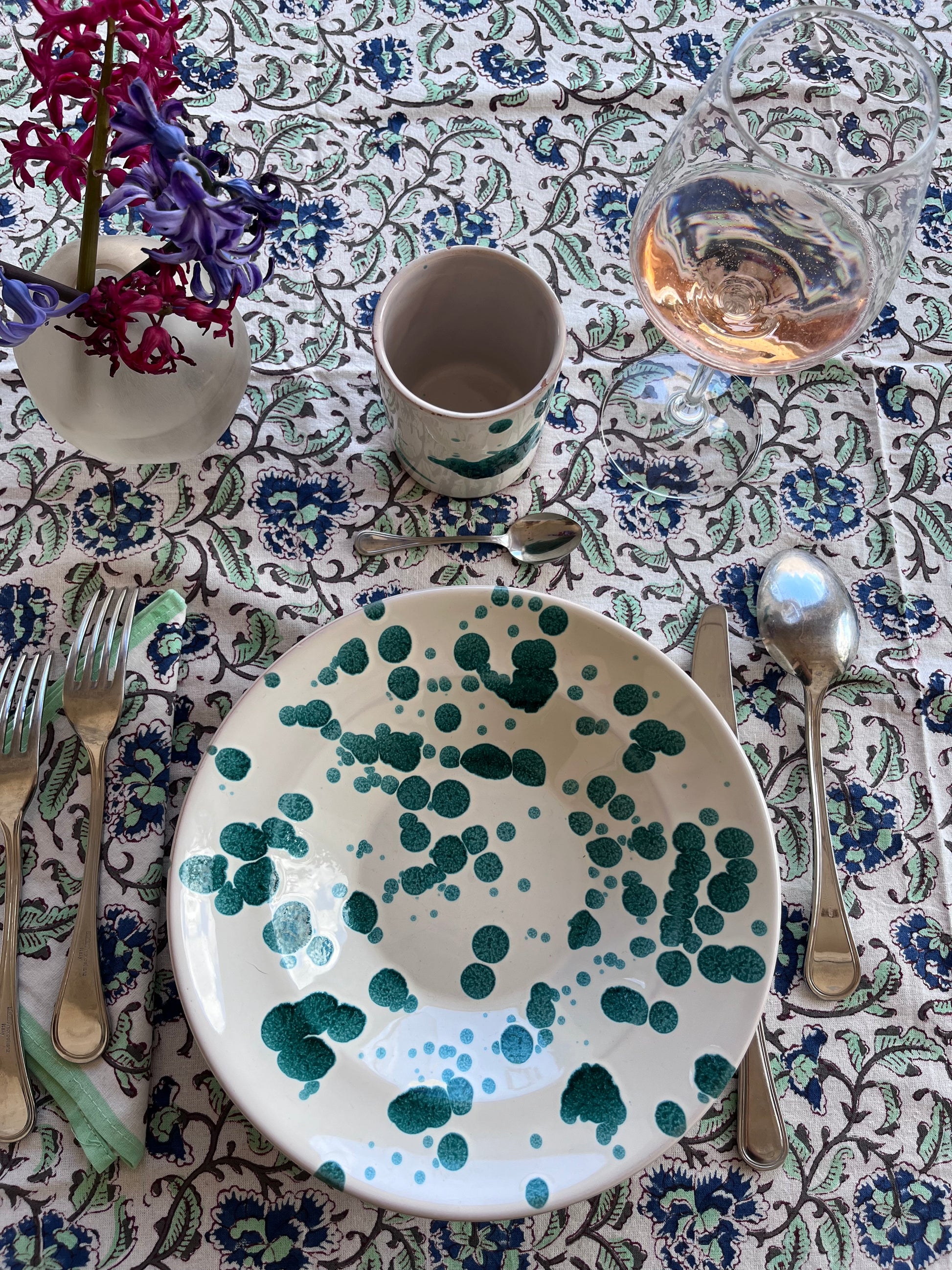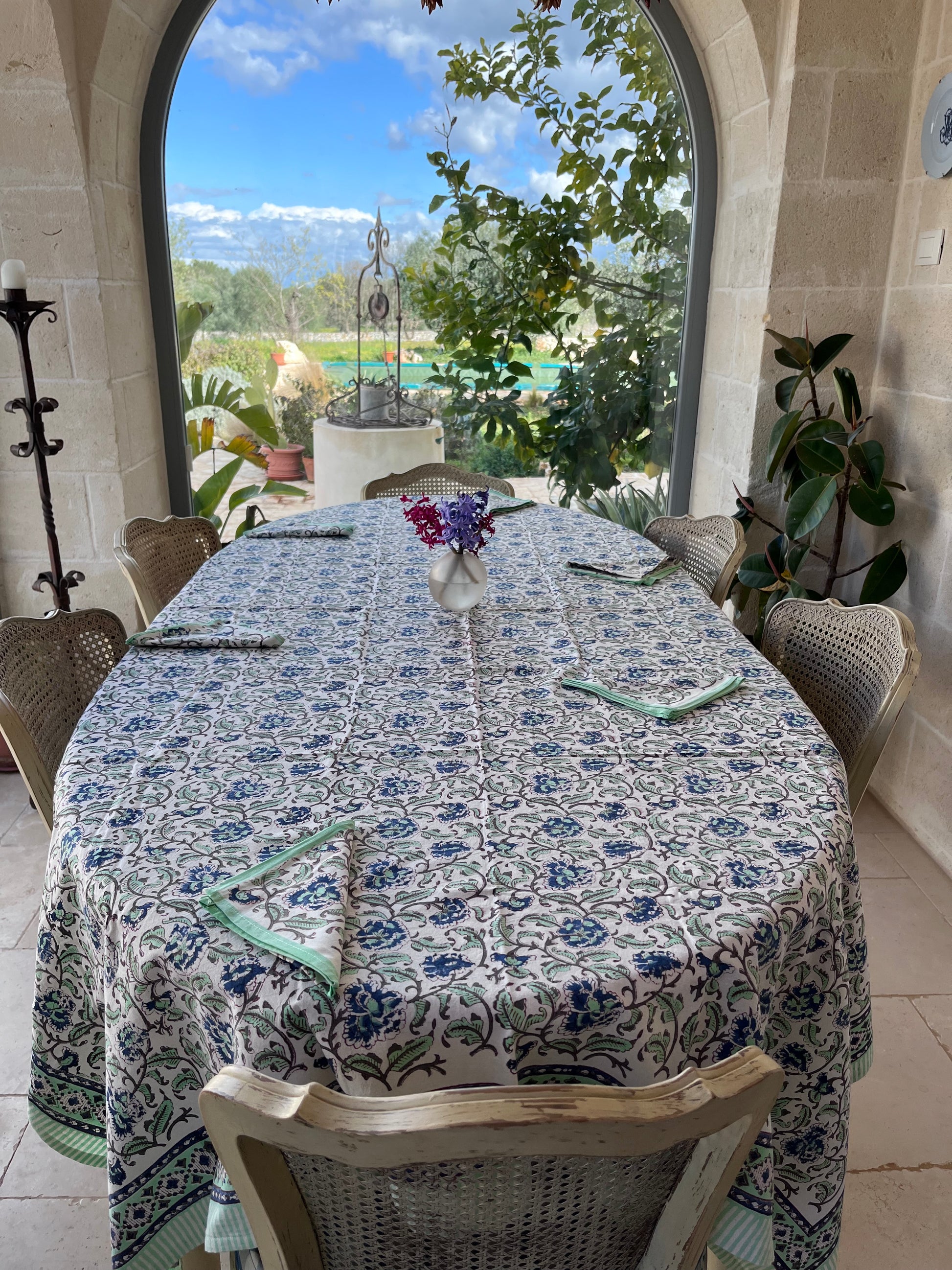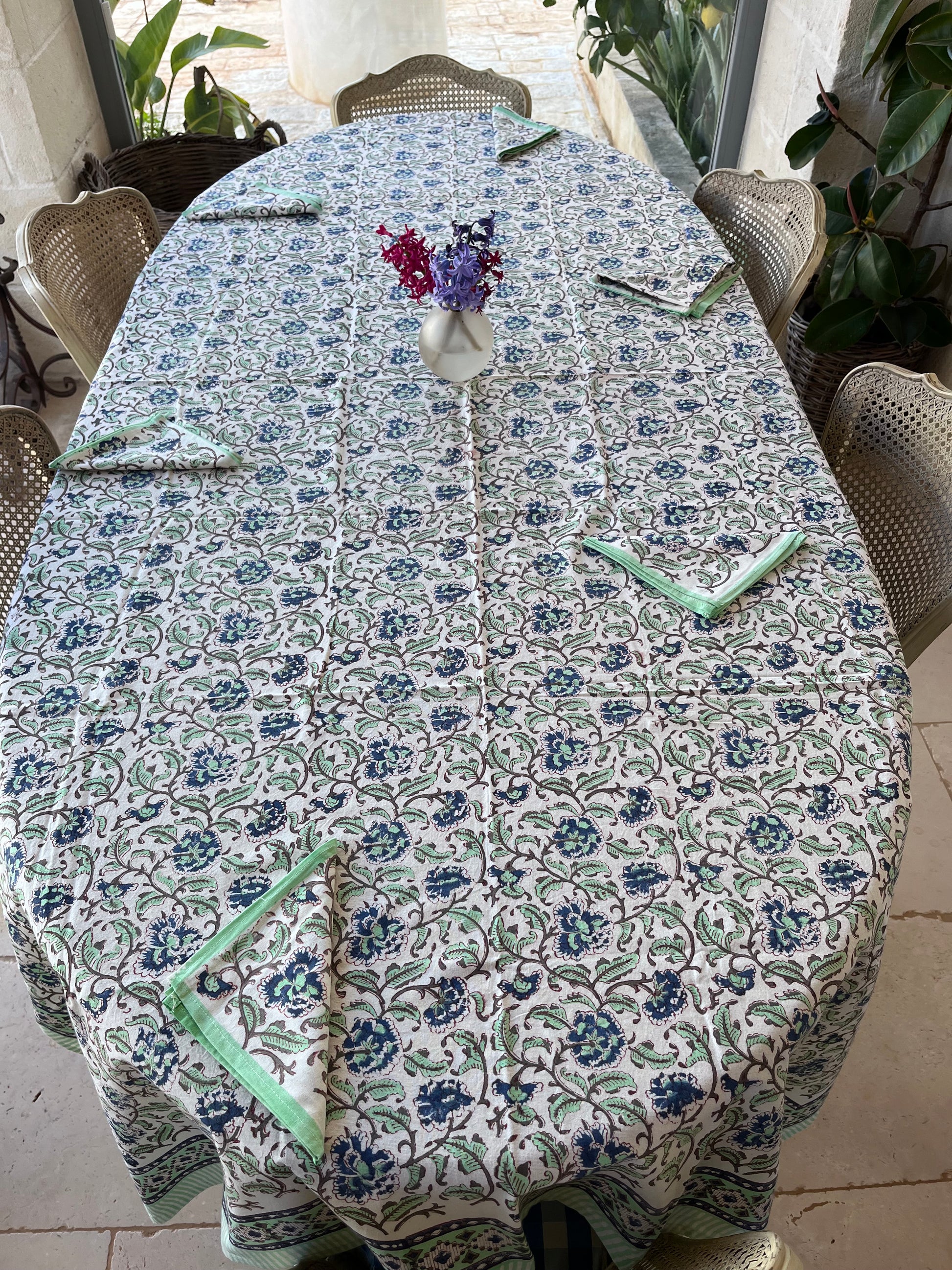 Tovaglia rettangolare 6 posti in cotone stampato a mano
